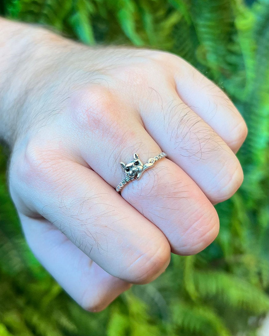 Anel em prata 925 envelhecida em formato de cachorrinho.