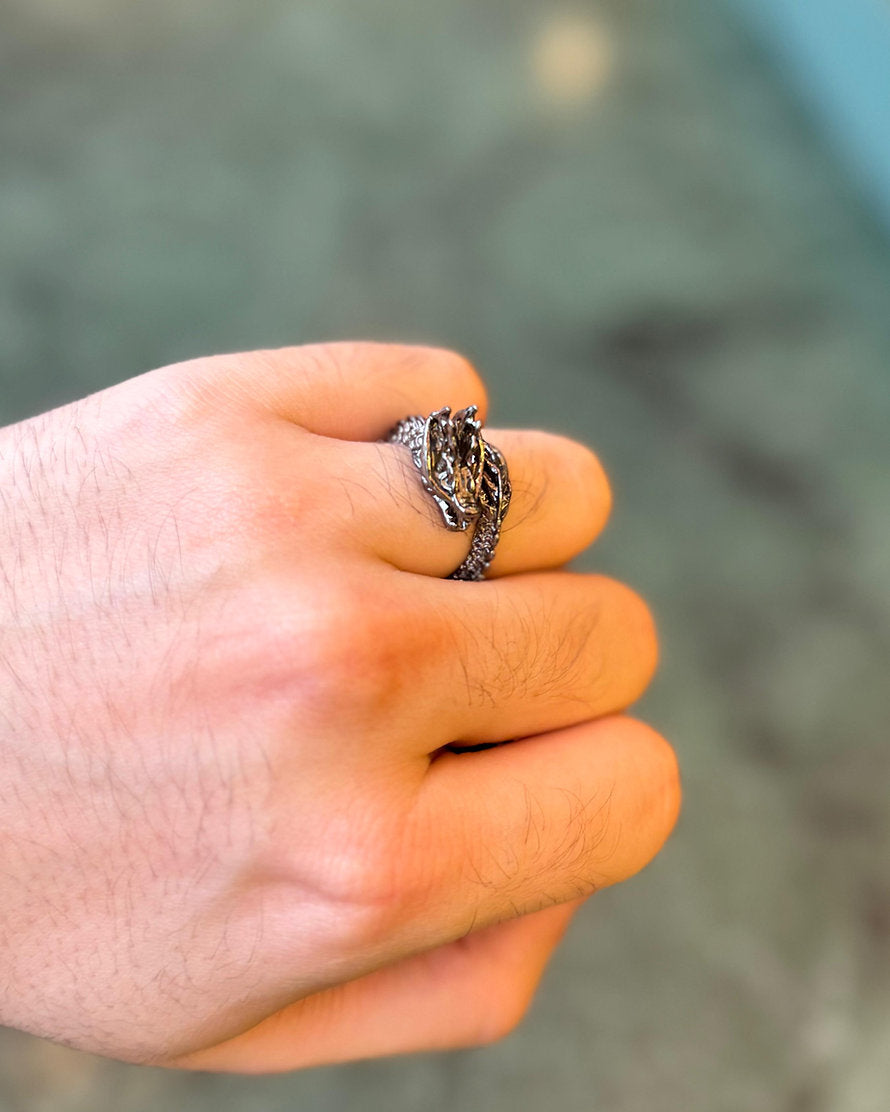Anel ajustável em semijoia banhado em ródio (prateado) ou ródio negro (preto).