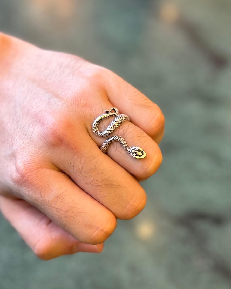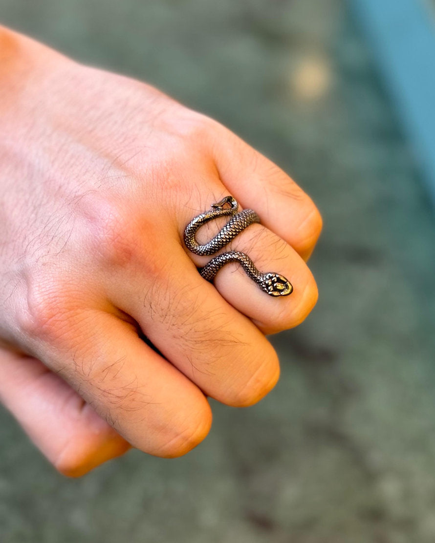 Anel ajustável em semijoia banhado em ródio (prateado) ou ródio negro (preto).