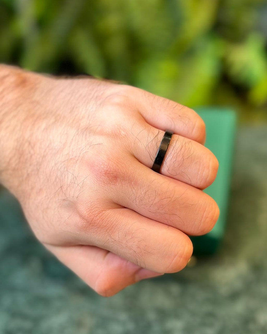 Anel em aço inoxidável banhado em ouro ródio negro (preto).