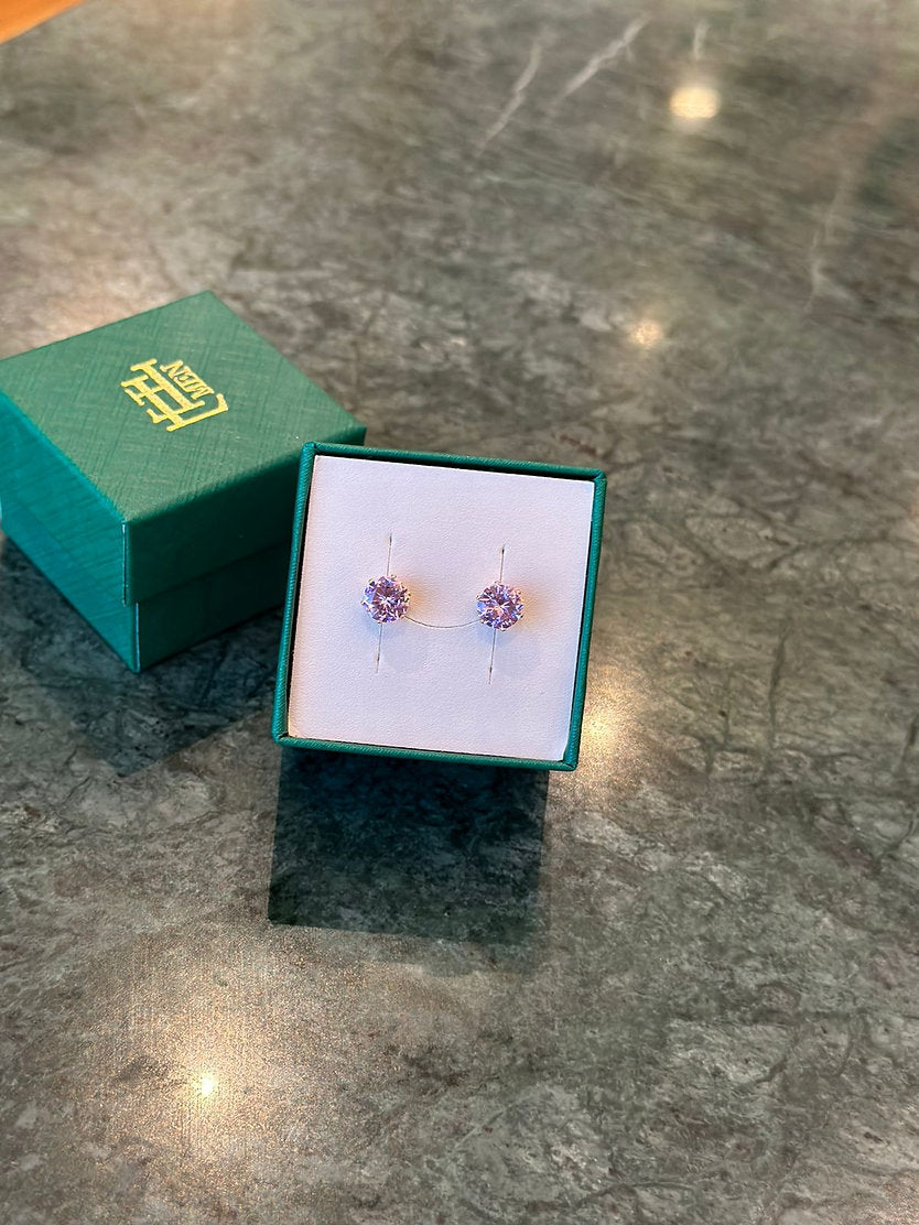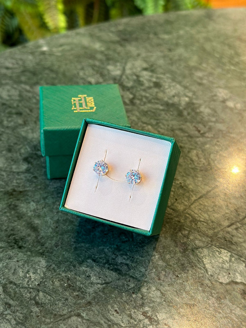 Par de brincos em aço para furo tradicional com zircônia em aproximadamente 8mm.
