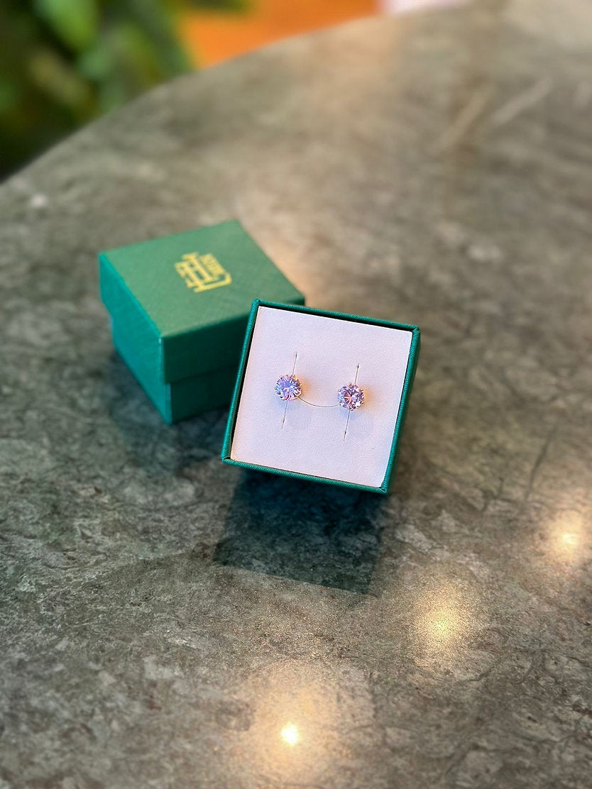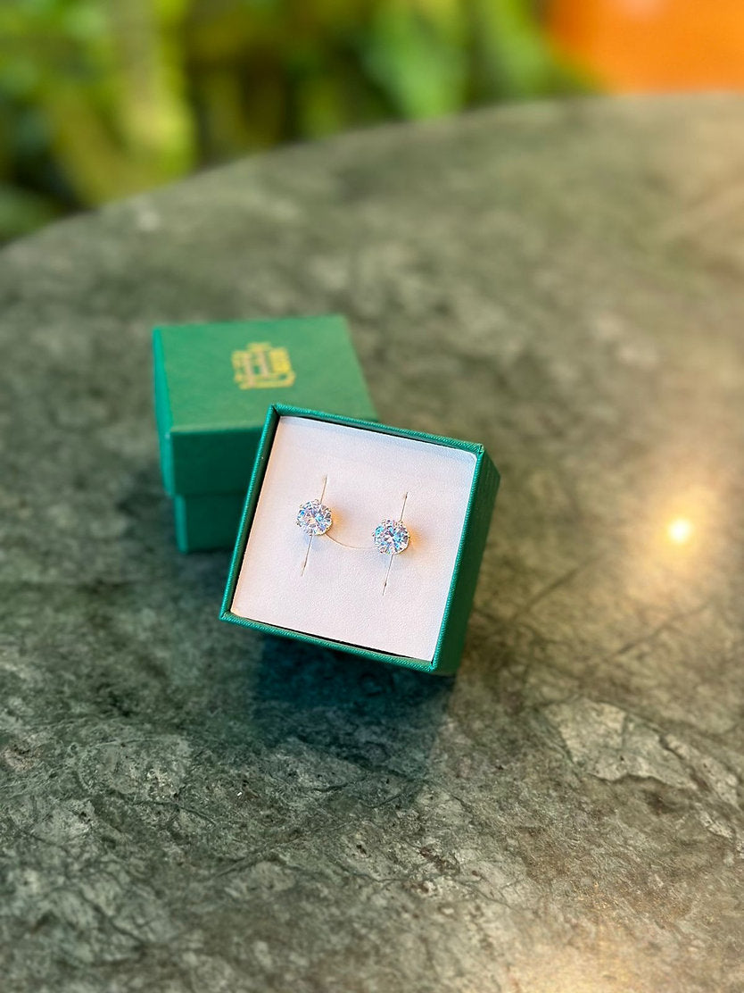 Par de brincos em aço para furo tradicional com zircônia em aproximadamente 6mm.