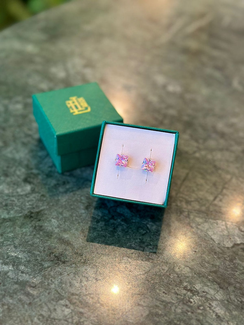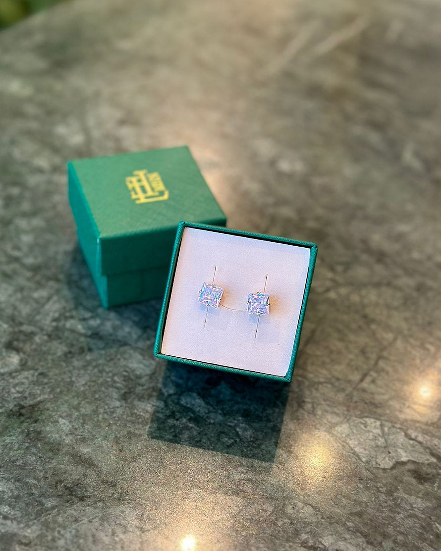 Par de brincos em aço para furo tradicional com zircônia em aproximadamente 8mm.