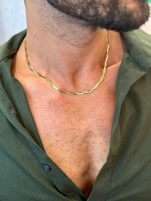 A choker braid é pra você que gosta de um visual mais marcante. Feito em aço inoxidável que não muda de cor, com opção banhada em ouro 18k, tem cerca de 45cm + 5cm de extensor pra você ajustar o tamanho.