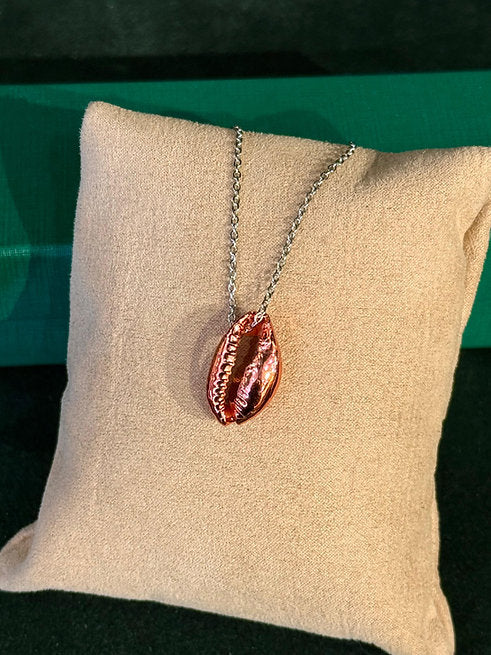 Colar com búzio com banho vermelho e corrente de 60cm em aço inoxidável que não muda de cor.