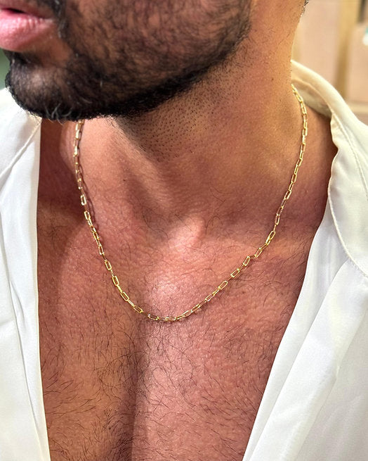 O colar de elos slim é um clássico, ideal pra dar um toque sofisticado e discreto no seu look.