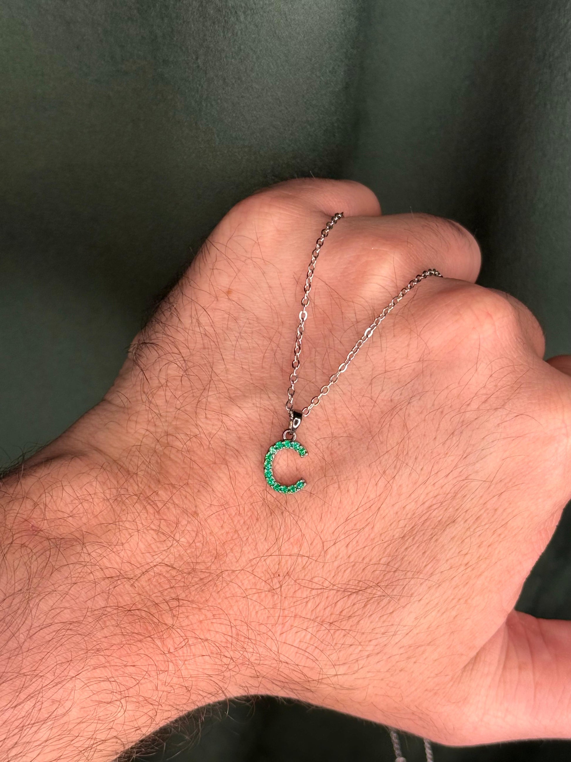Colar em aço com pingente banhado em ródio negro (preto) e cravejados com zircônias de primeira linha na cor verde esmeralda.