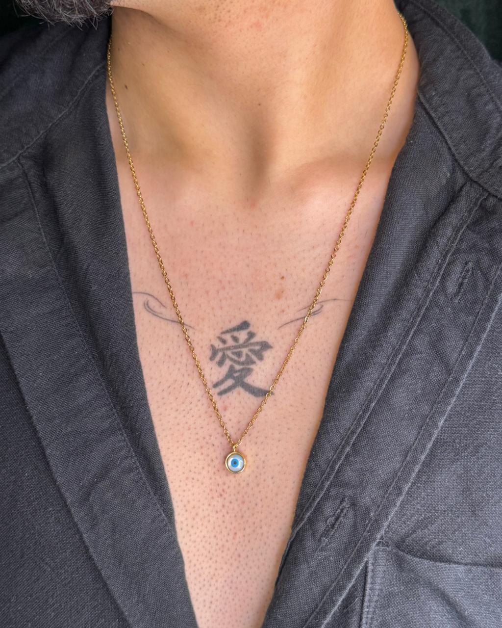 Colar em aço inoxidável com pingente de olho grego em semijoia, disponível em banho de ródio (prateado e ouro 18k (dourado).