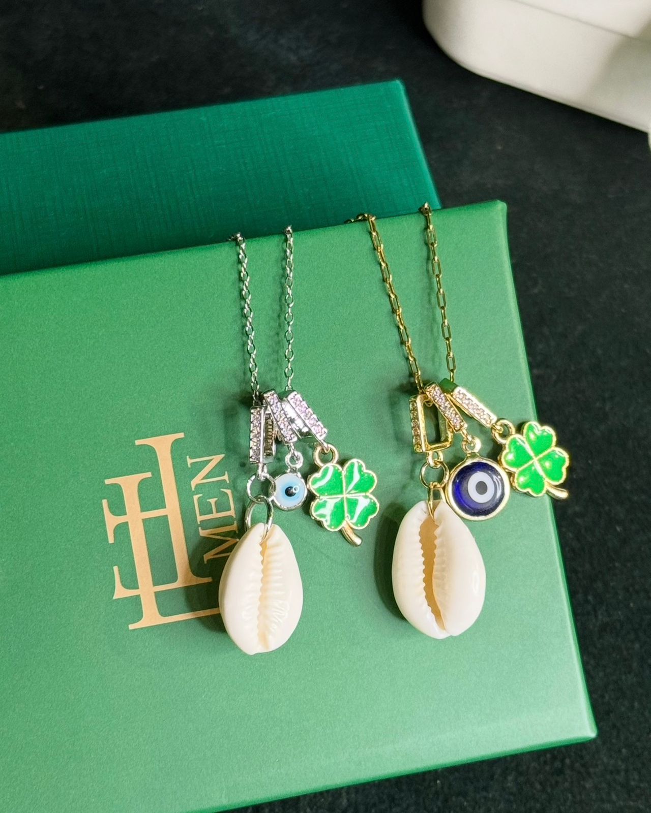 Colar Patuás Búzio Olho Grego e Trevo