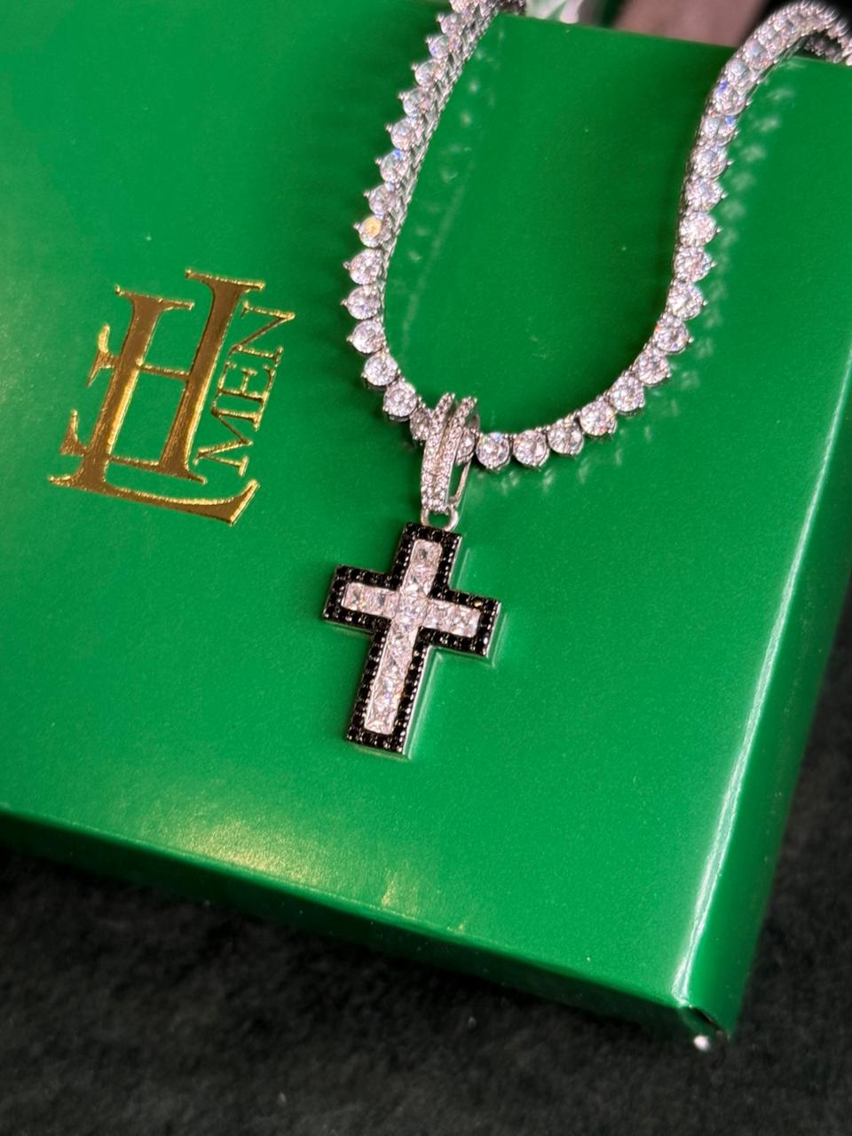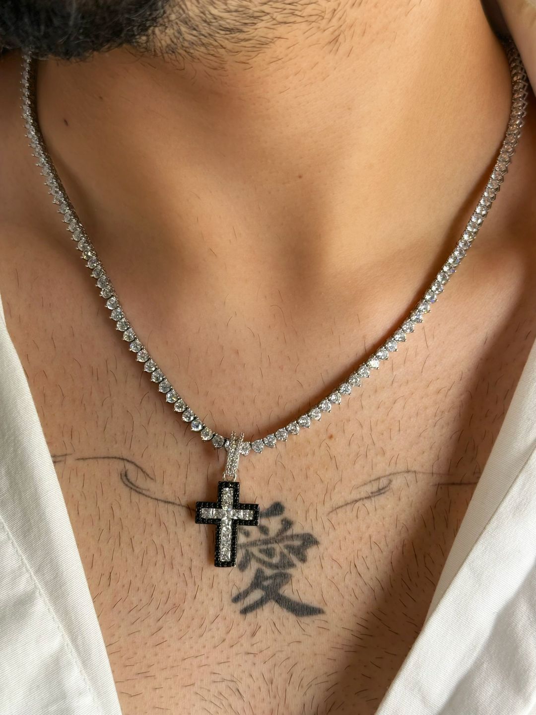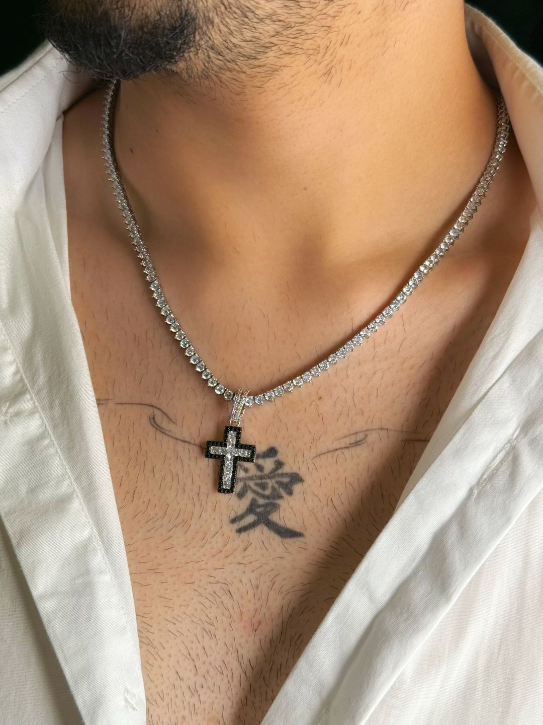 Colar Riviera Cristal Premium + Lumen Cross Ônix