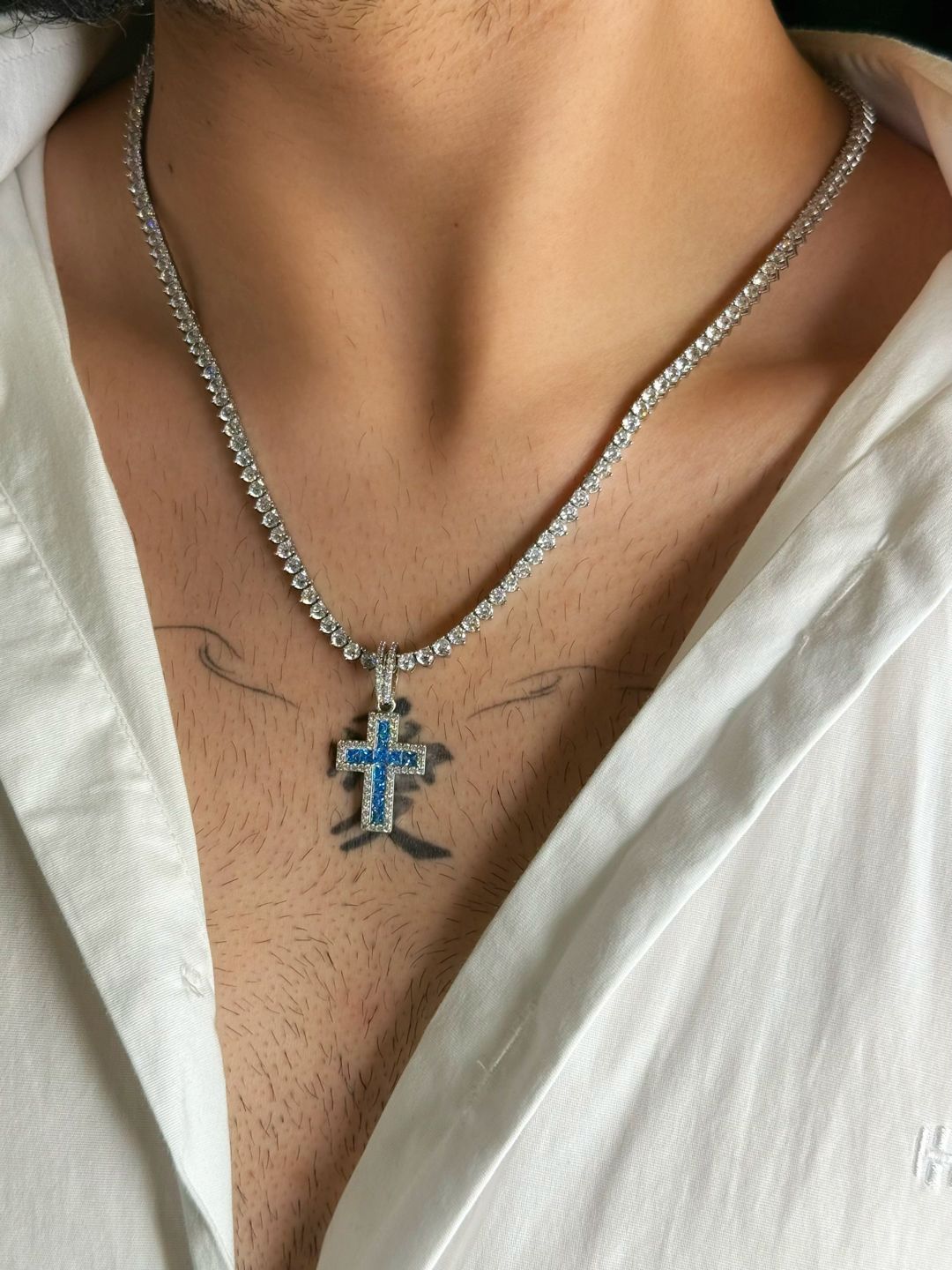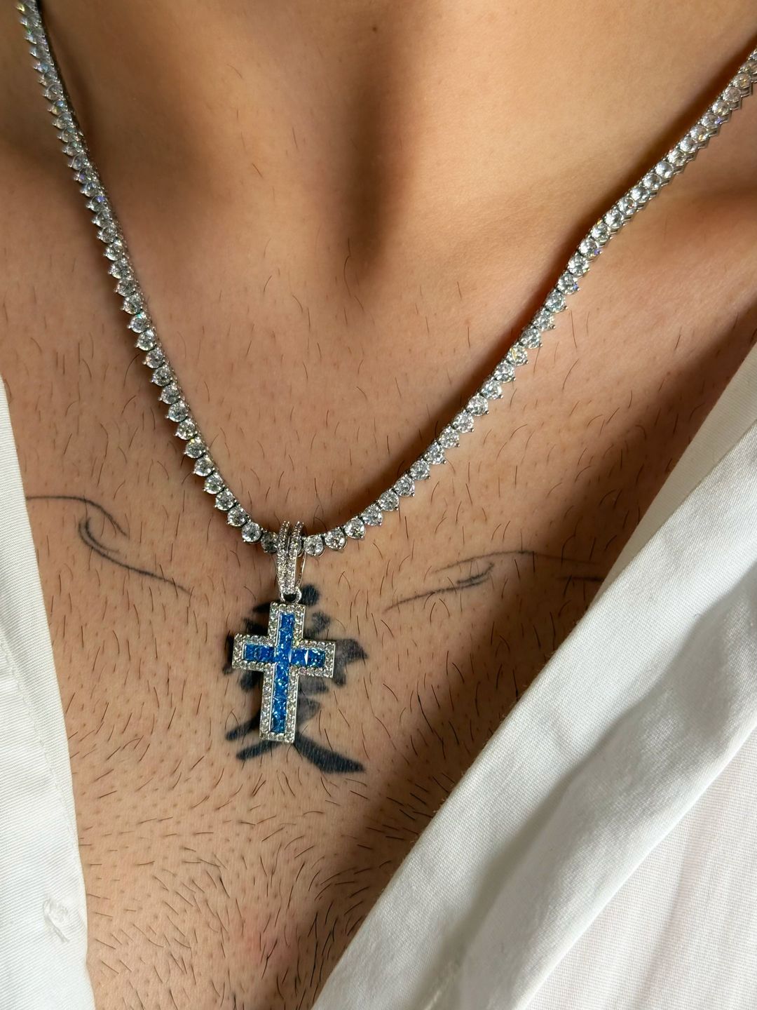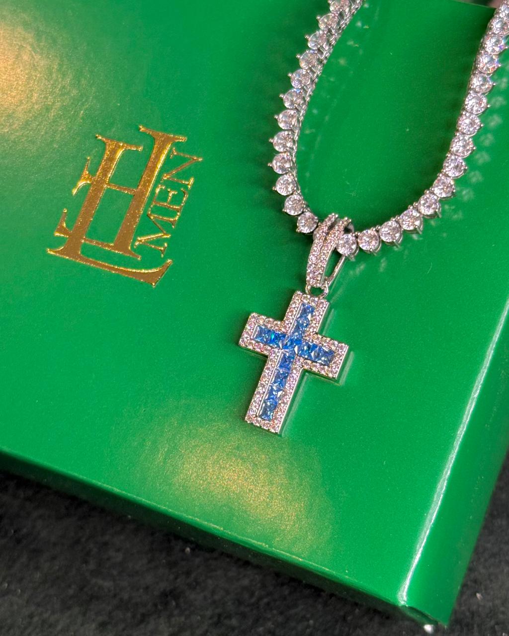 Colar Riviera Cristal Premium + Lumen Cross Safira