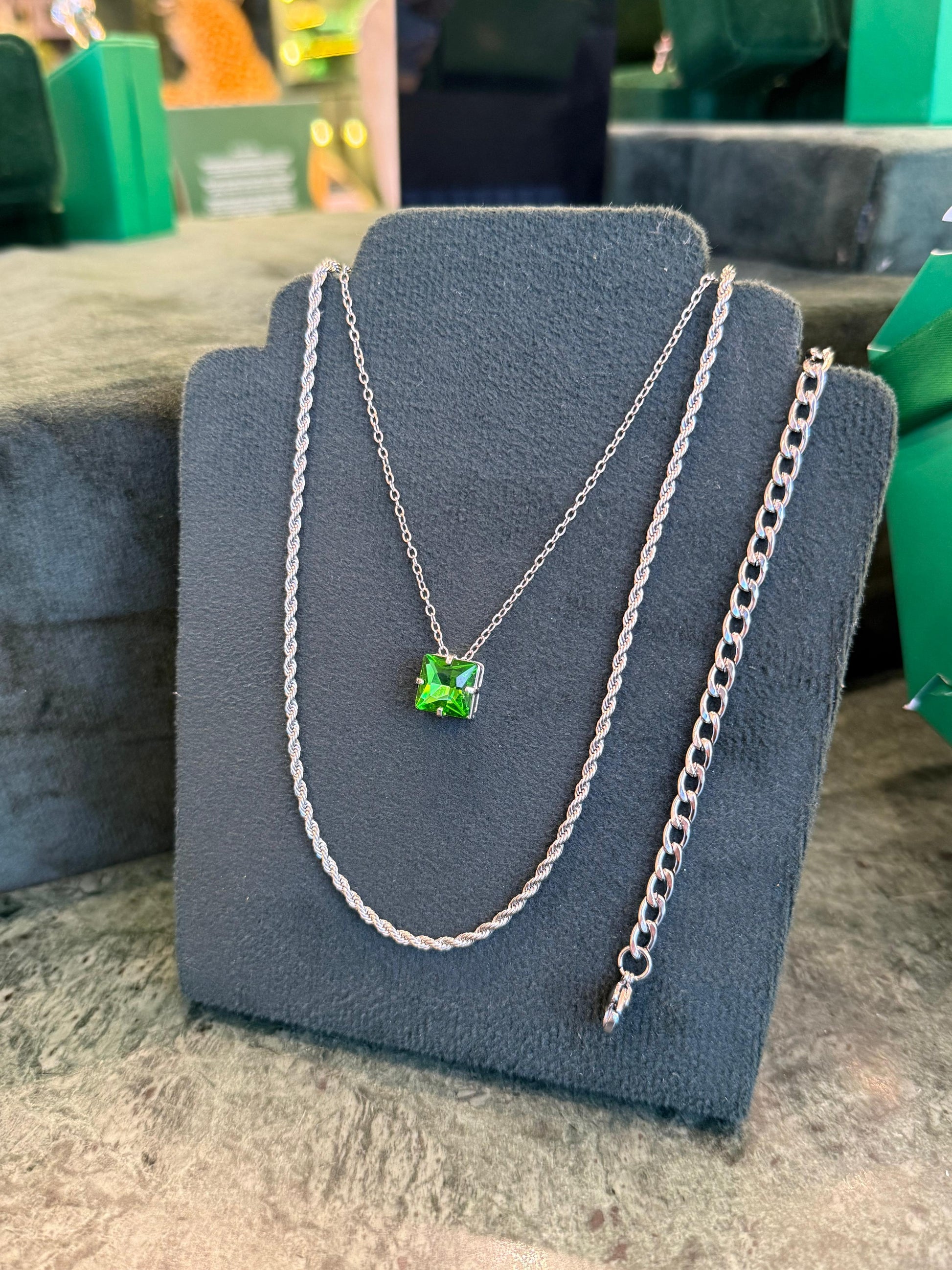 Kit promocional composto por 3 peças em aço inoxidável, sendo dois colares e uma pulseira.