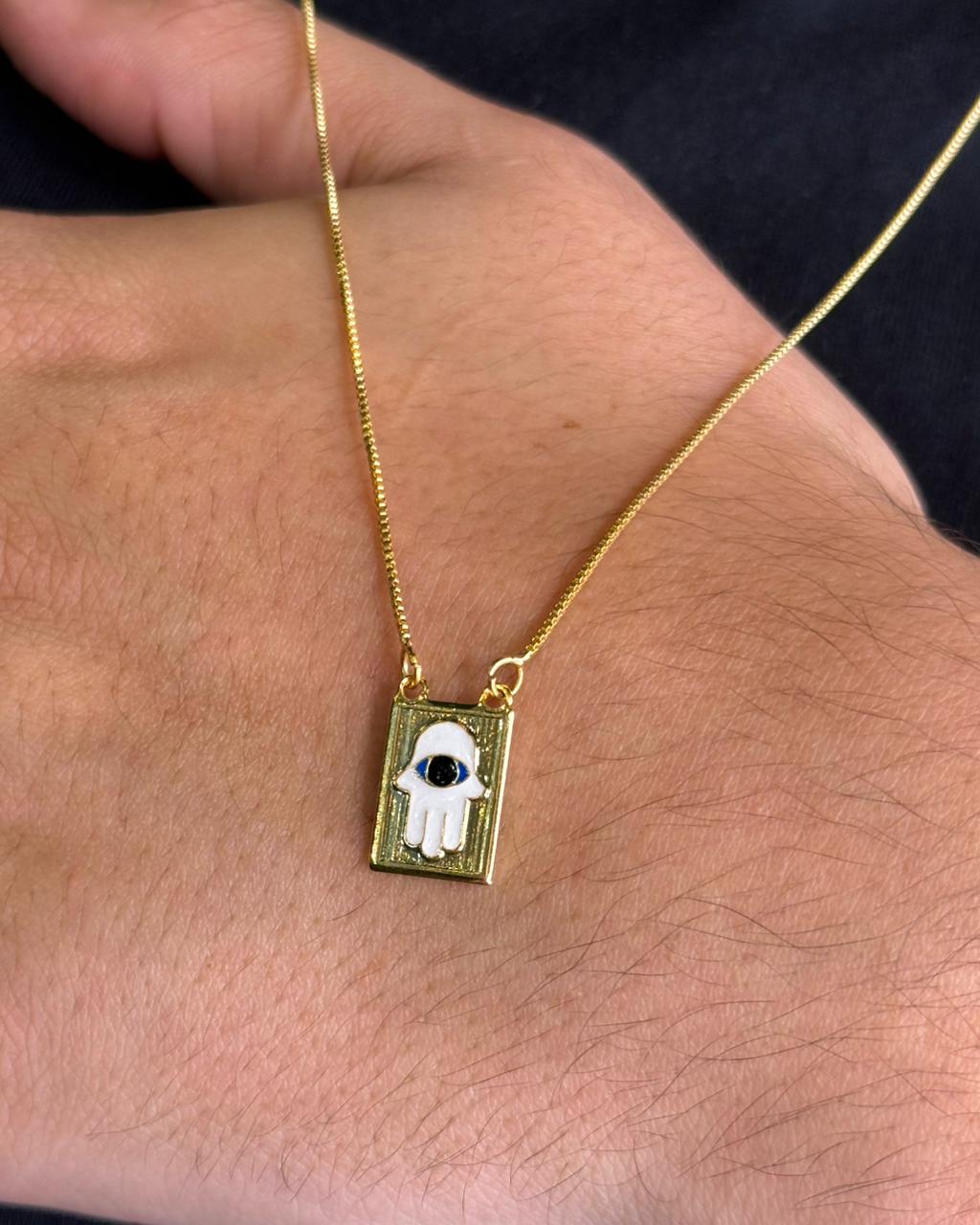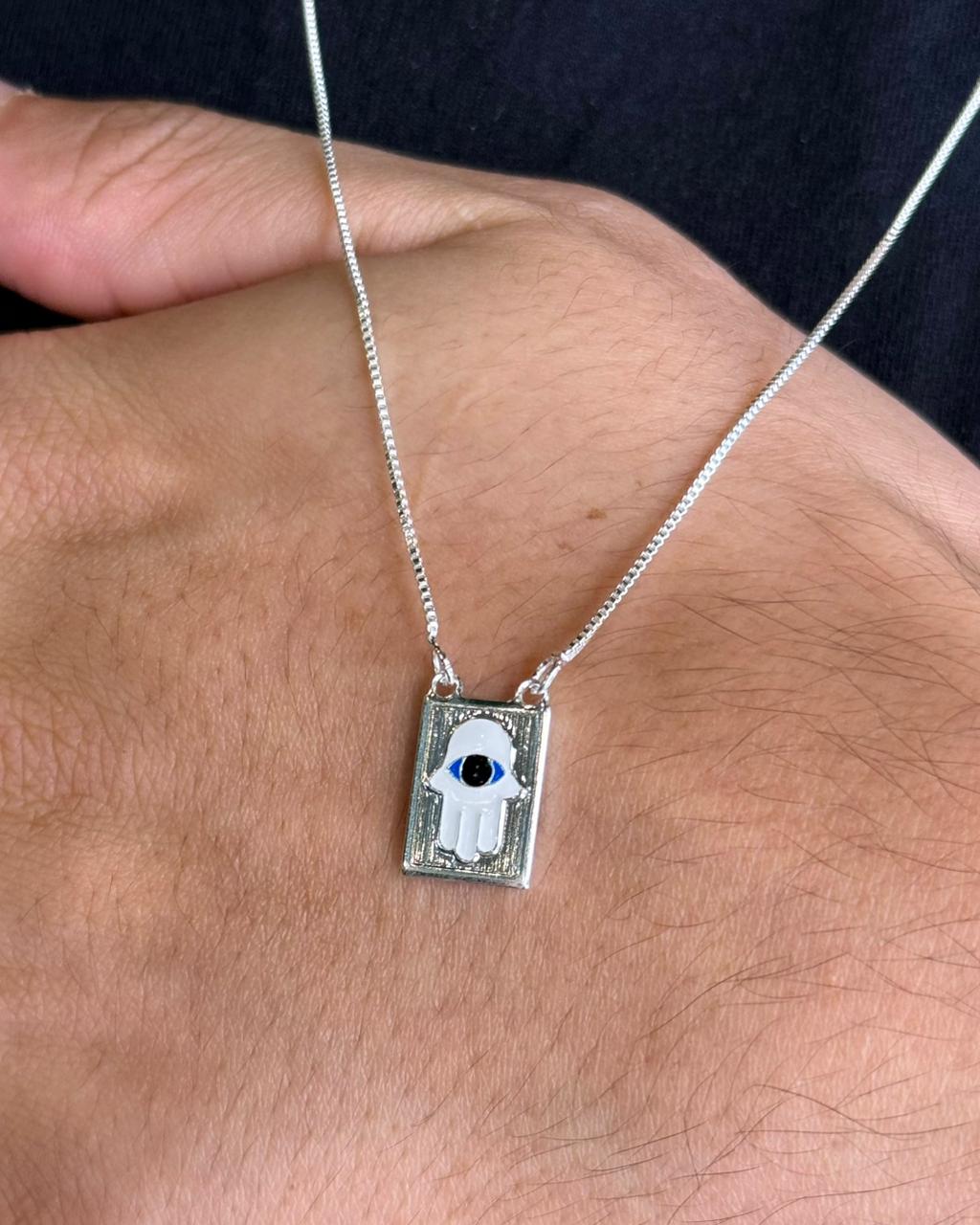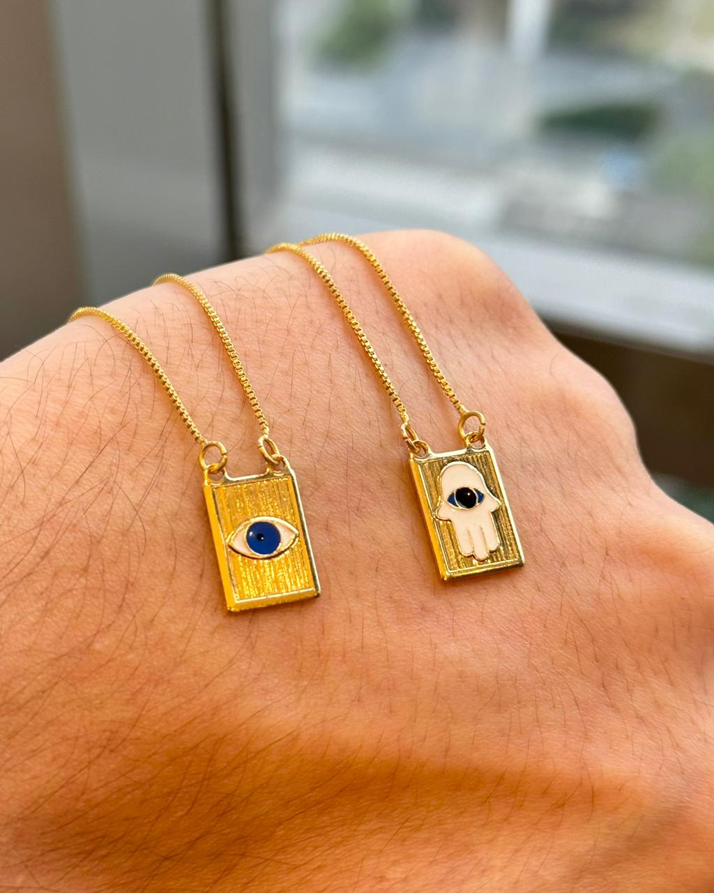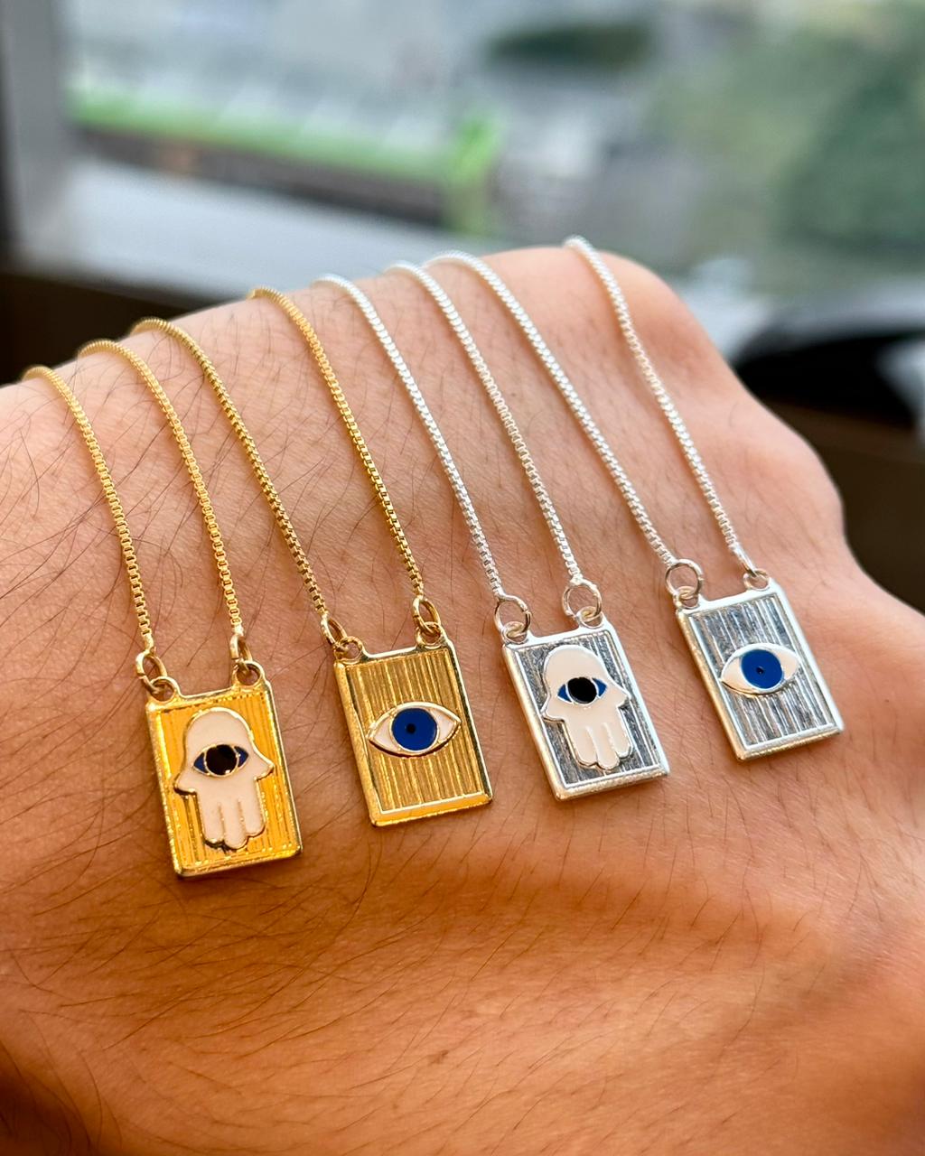 Escapulário com banho de prata 925 ou de ouro 18k, com imagem de olho grego e mão de hansa pra te proteger de toda energia negativa!