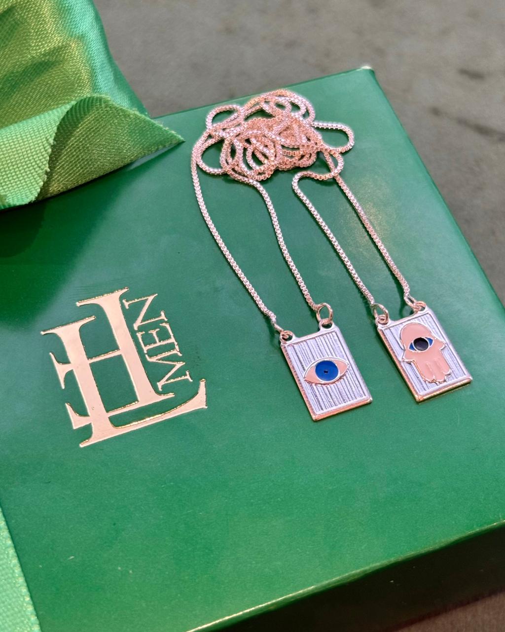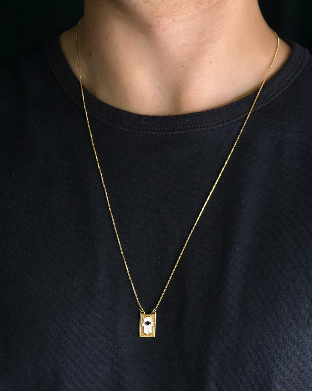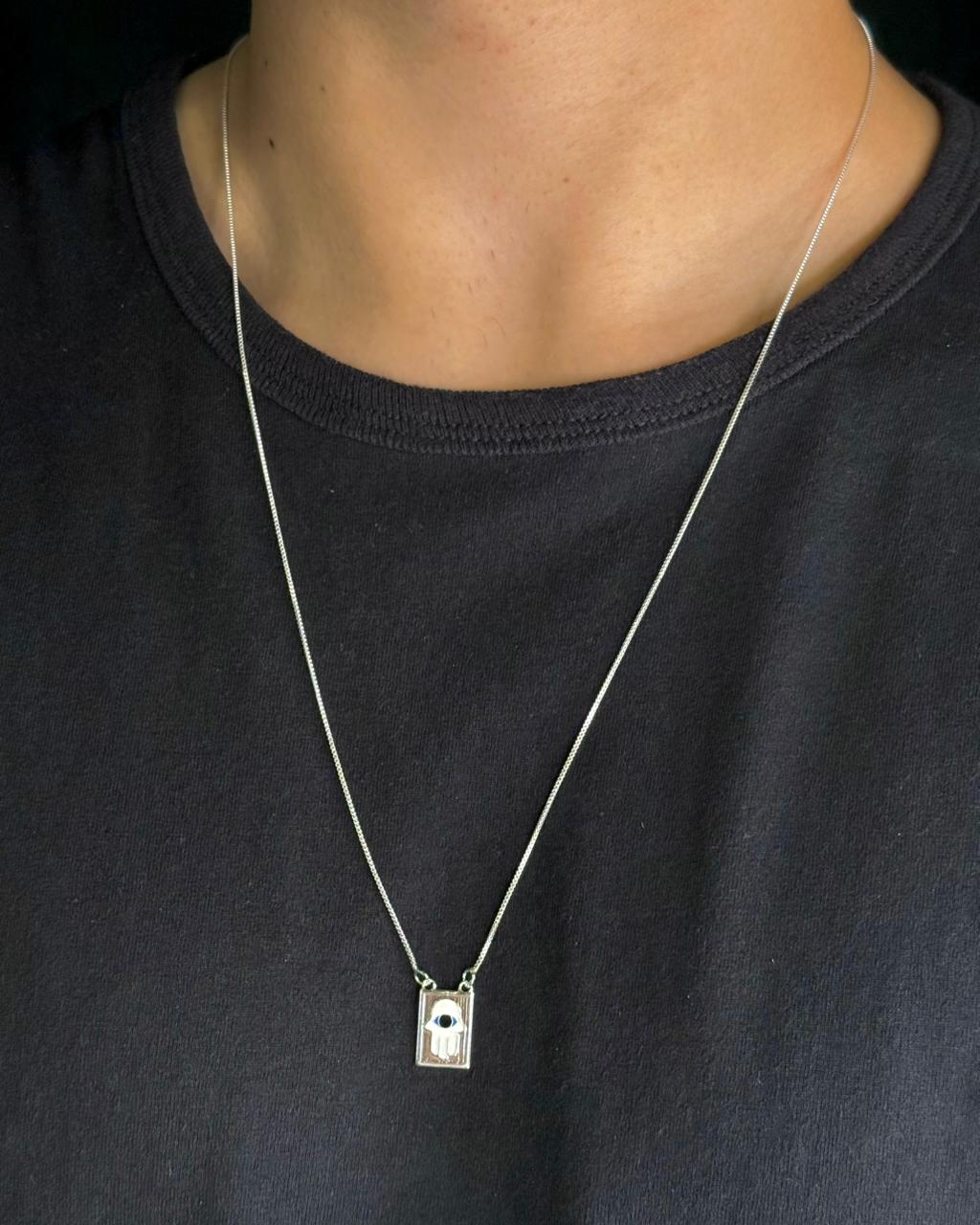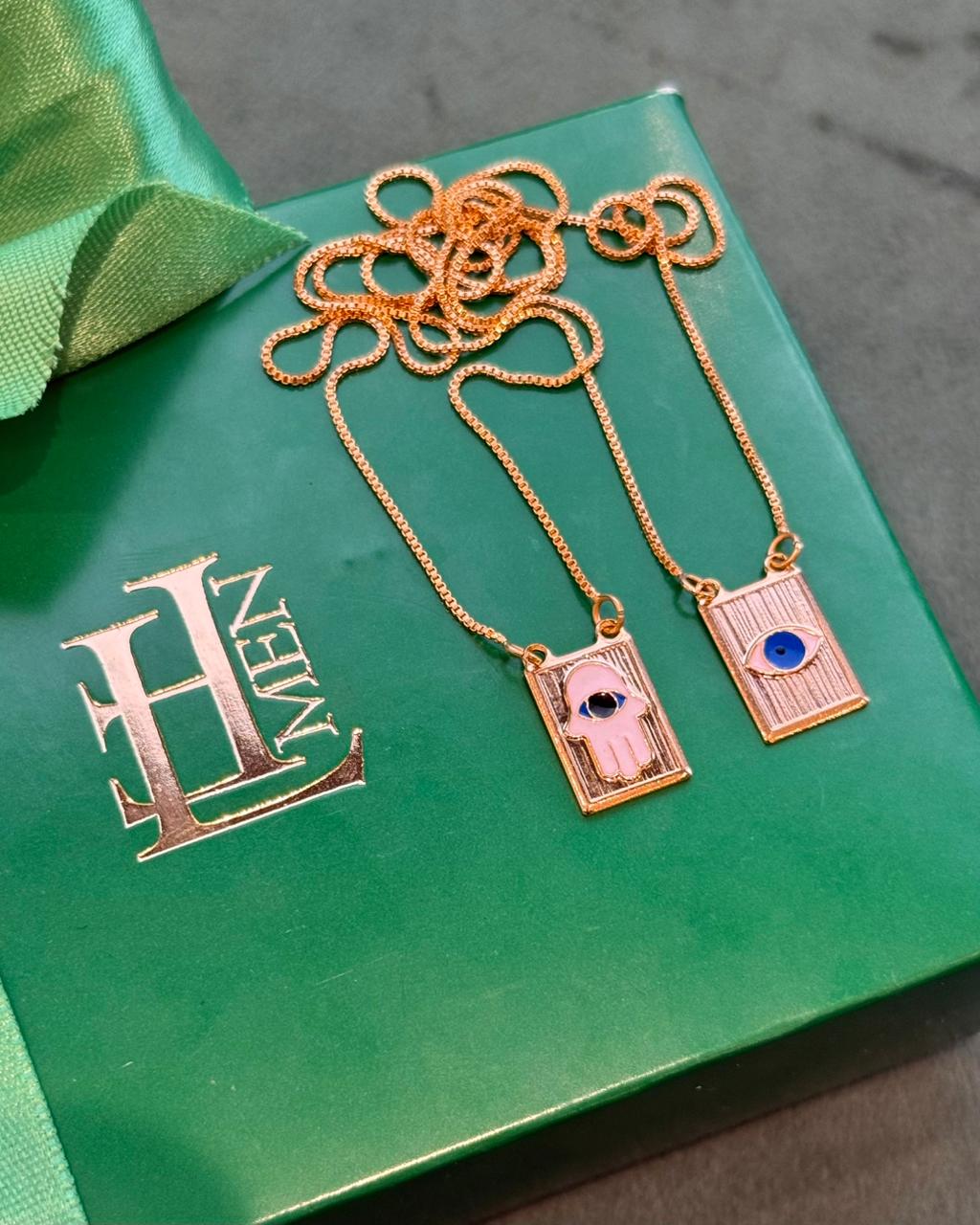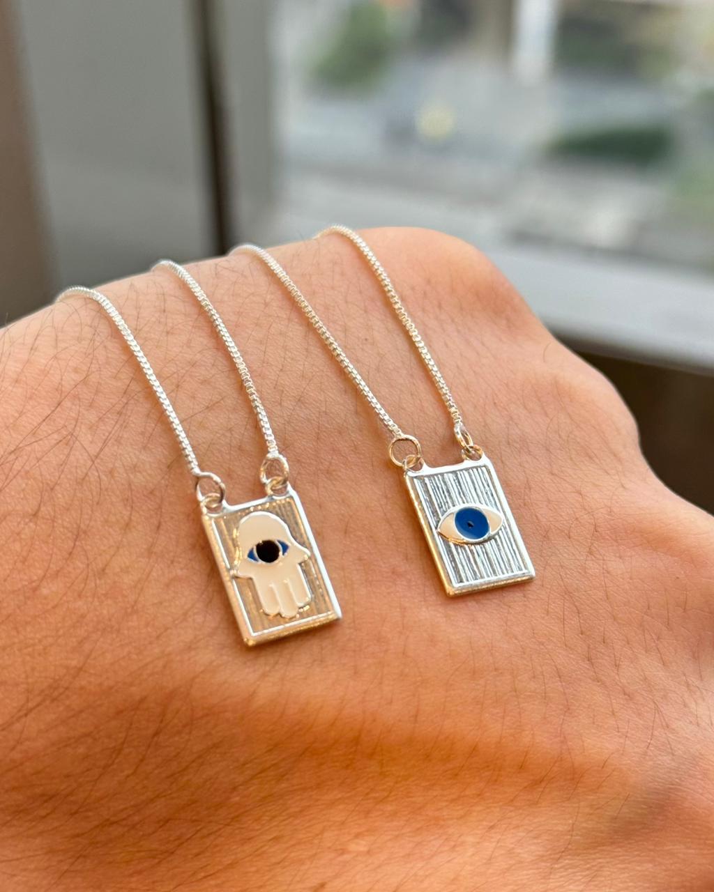 Escapulário com banho de prata 925 ou de ouro 18k, com imagem de olho grego e mão de hansa pra te proteger de toda energia negativa!