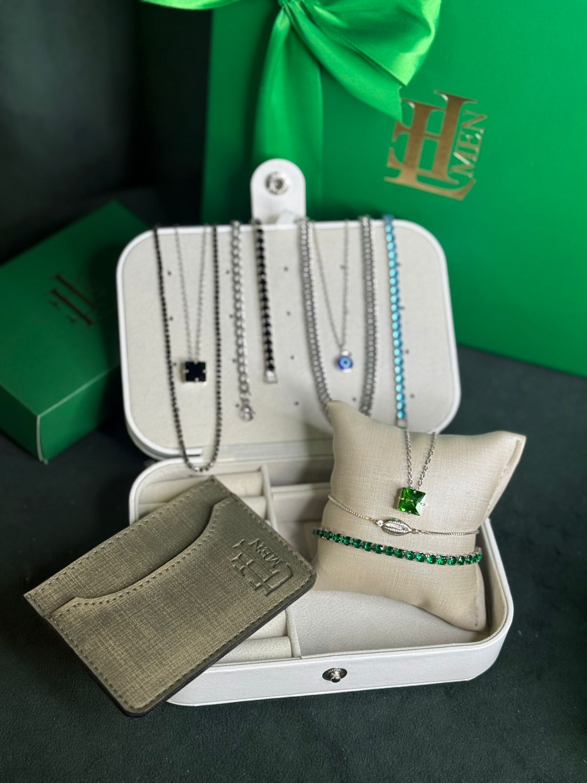 Acompanha lindo porta joias médio e porta cartão Clássico LFmen de presente.