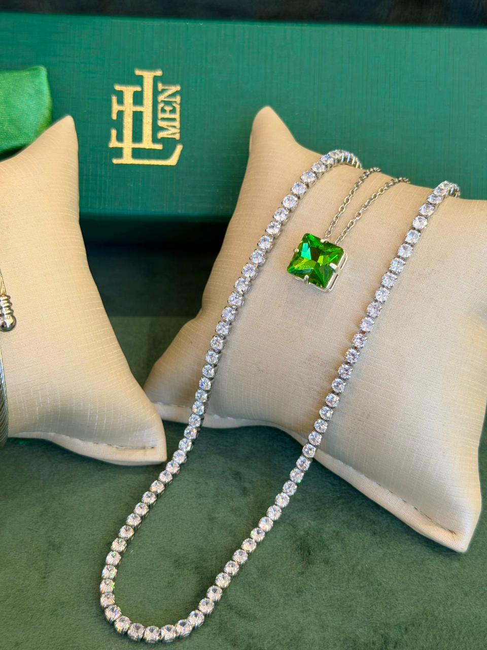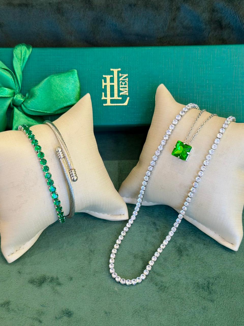 Este kit vai com 4 peças sendo 2 colares e 2 pulseiras. Com peças em aço e semijóias banhadas em ródio e cravejadas com zircônias de primeira linha.