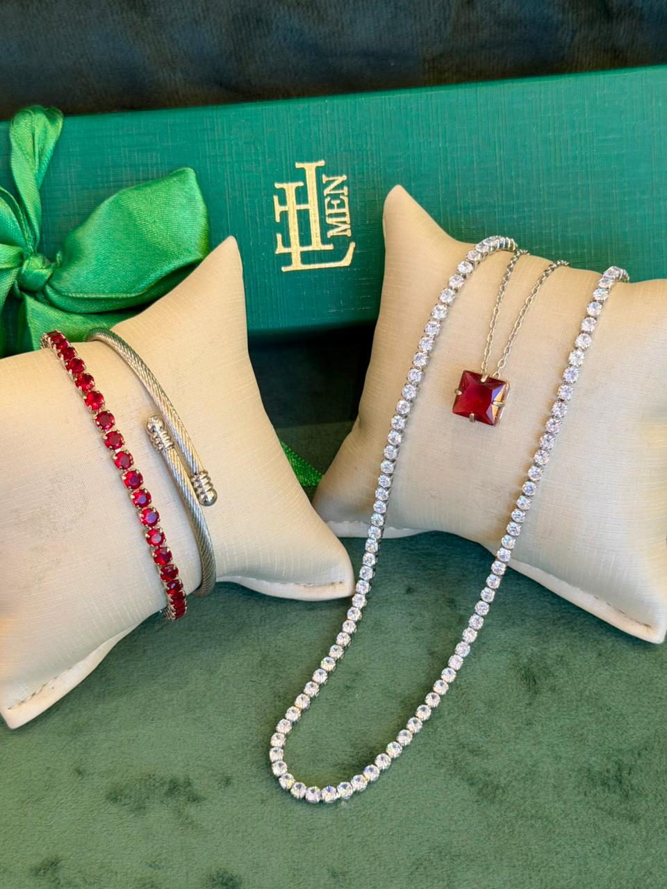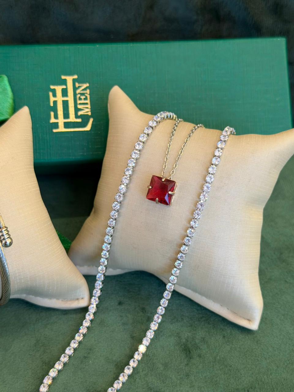 Este kit vai com 4 peças sendo 2 colares e 2 pulseiras. Com peças em aço e semijóias banhadas em ródio e cravejadas com zircônias de primeira linha.