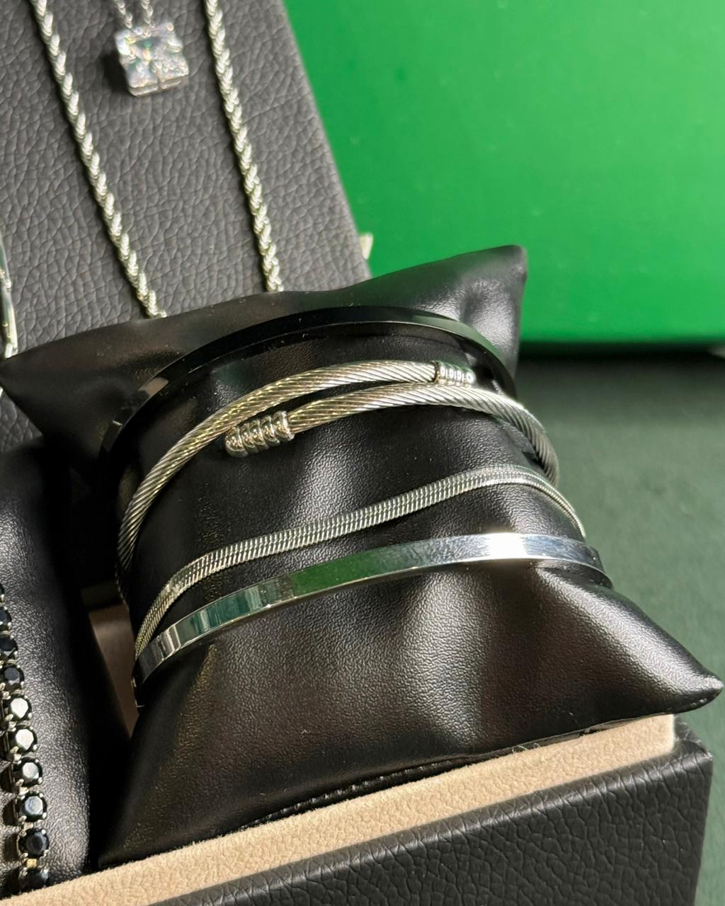 Kit especial composto por 22 peças clássicas LFmen, sendo essas em aço e semijoias banhadas em ródio (prateado) ou em ródio negro. Cravejadas com zirconias de primeira linha.