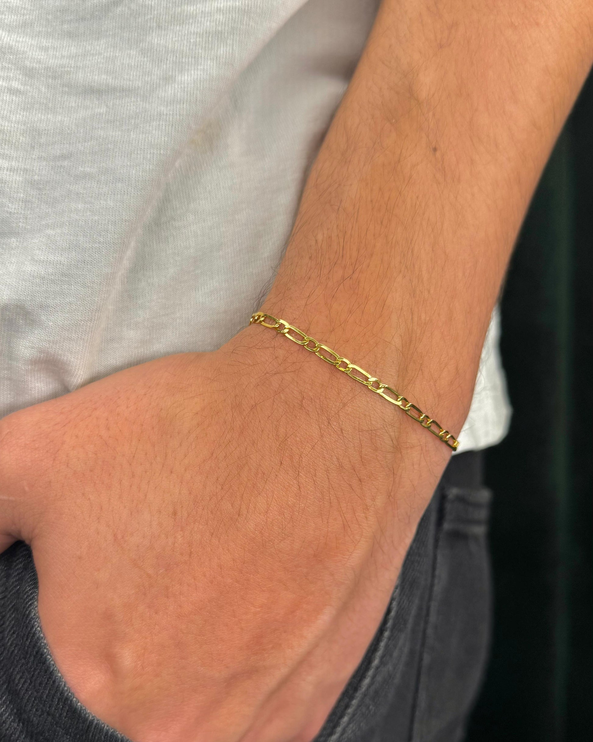 Pulseira em Ouro 18K, refinada e duradoura, comprimento de aprox: 21cm. Uma joia autêntica que combina sofisticação e estilo, ideal para homens que valorizam exclusividade e presença em cada detalhe. Perfeita para uso individual ou em composição com outras peças, reforçando um lifestyle elegante e atemporal
