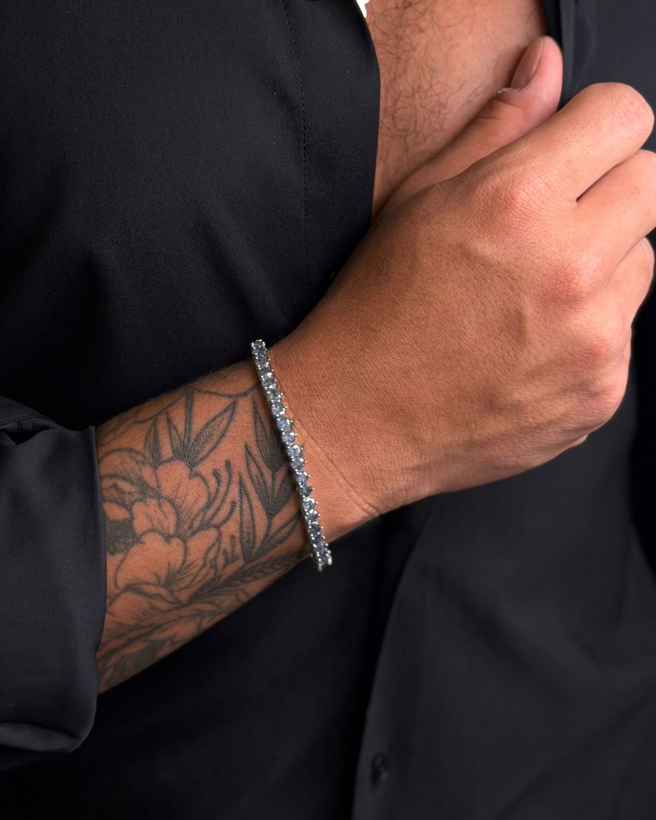Pulseira banhada em ródio e cravejado com zircônias de primeira linha.