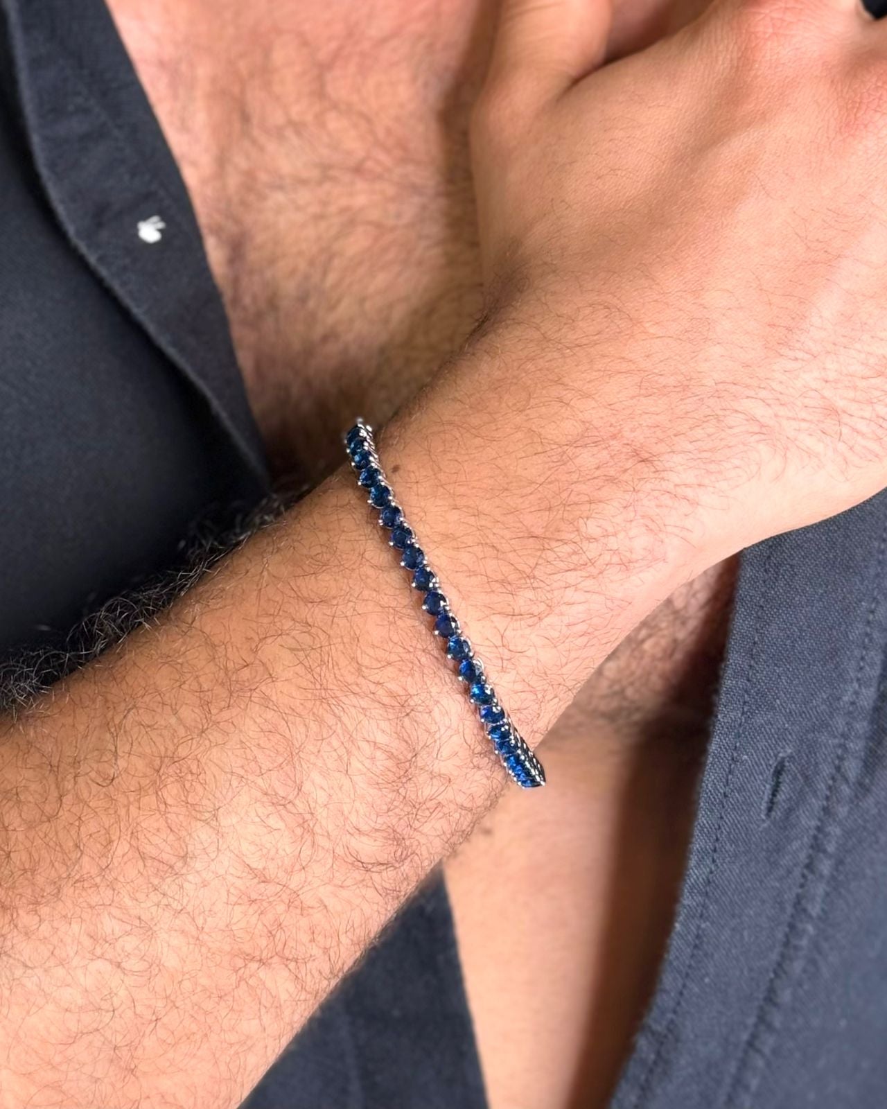 Pulseira banhada em ródio e cravejado com zircônias de primeira linha.