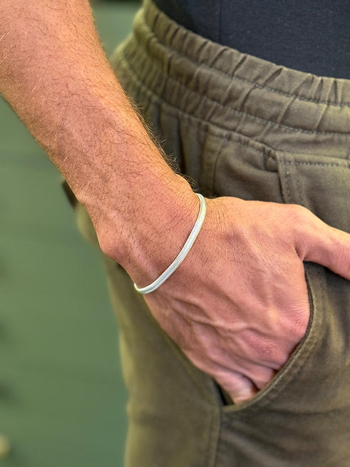 Linda e elegante, a pulseira Skin é banhada em prata pra ter esta cor viva e marcante. Com aprox: 16cm + 5cm (extensor).