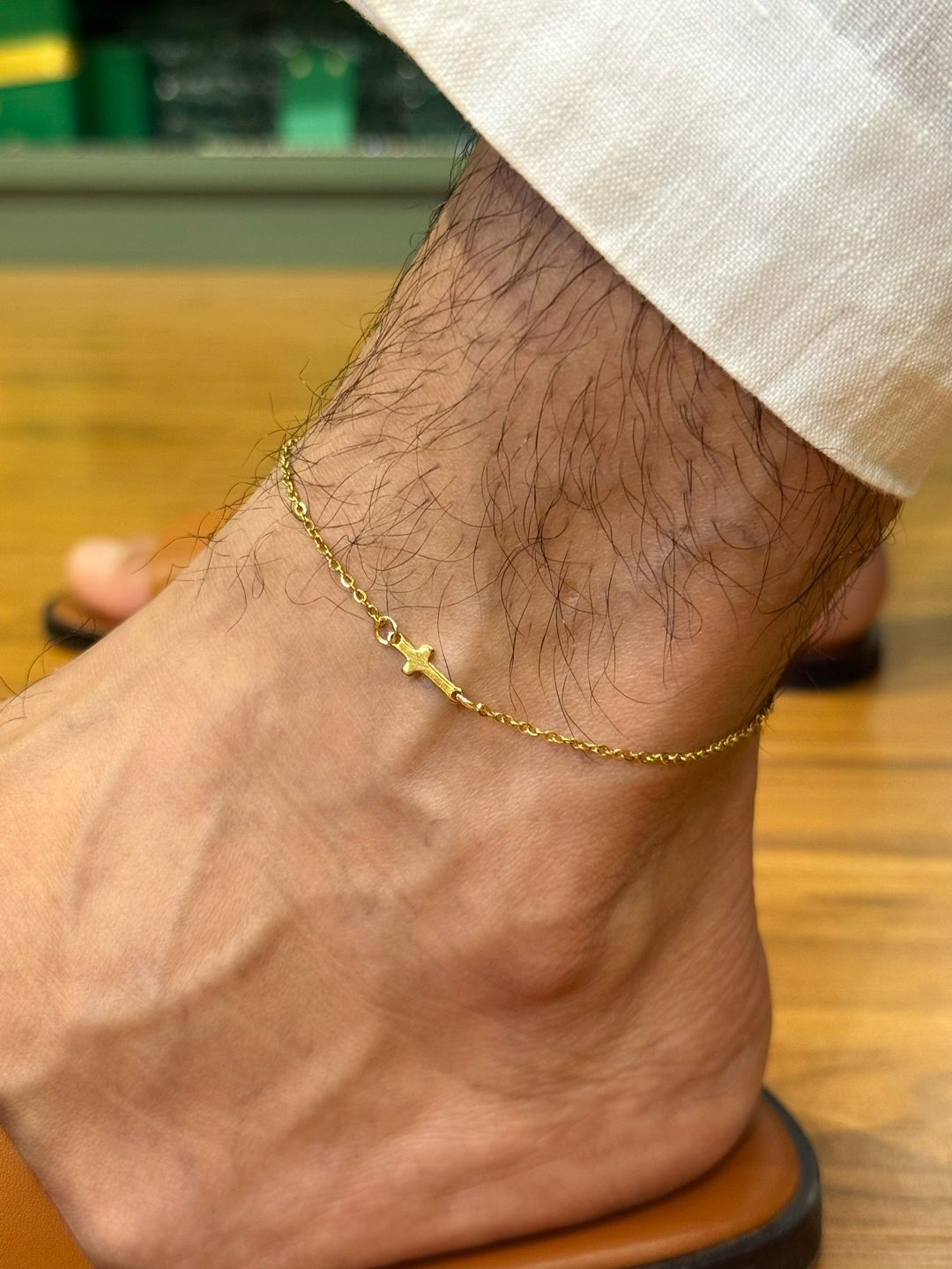 Tornozeleira em aço inoxidável com opção banhada em ouro 18k